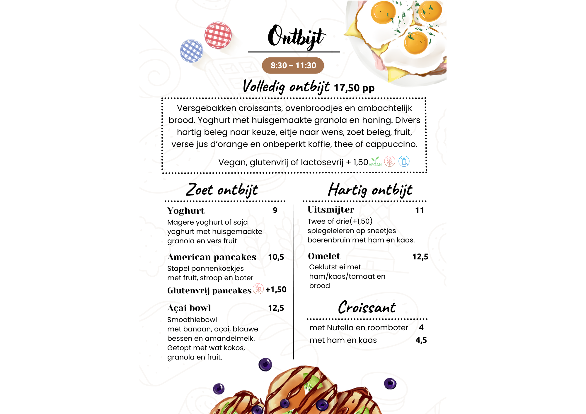 Ontbijt, Lunch, koffie, vlaai en borrel